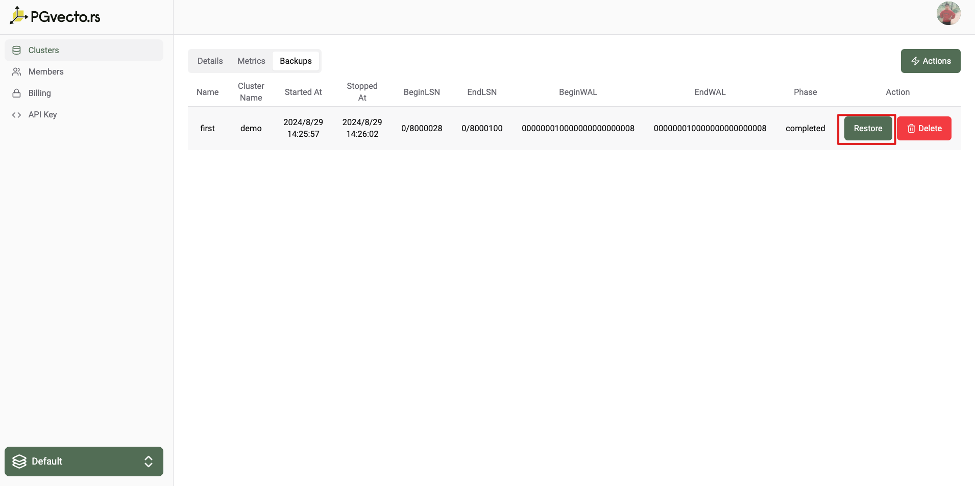 If you want to restore from an on-demand backup, you can follow the steps below: